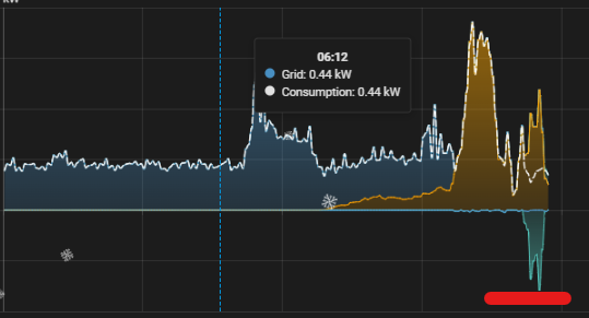 Look at example below, sun was finally shining i use like 0.4 for direct consumption, the rest of the solar is going into the batteries , like 1.1