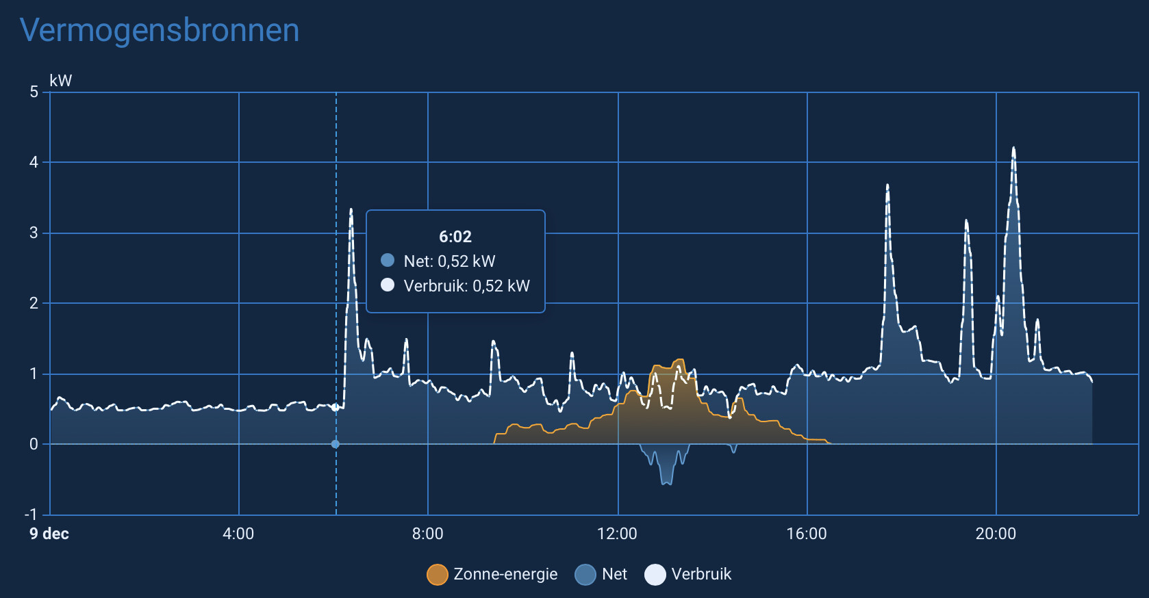 in Dutch the official naming for Energy is Verbruik and for Power is Vermogen.