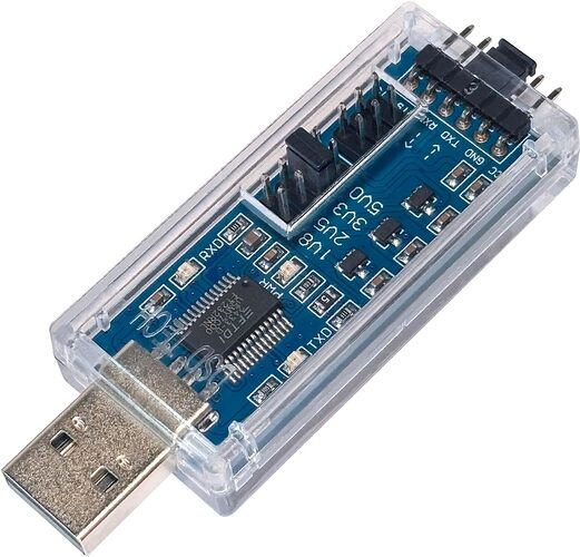 Don’t forget that you need to ‘cross-connect’ the RX and TX pins, i.e. TX on the board goes to RX on the converter and vice versa.