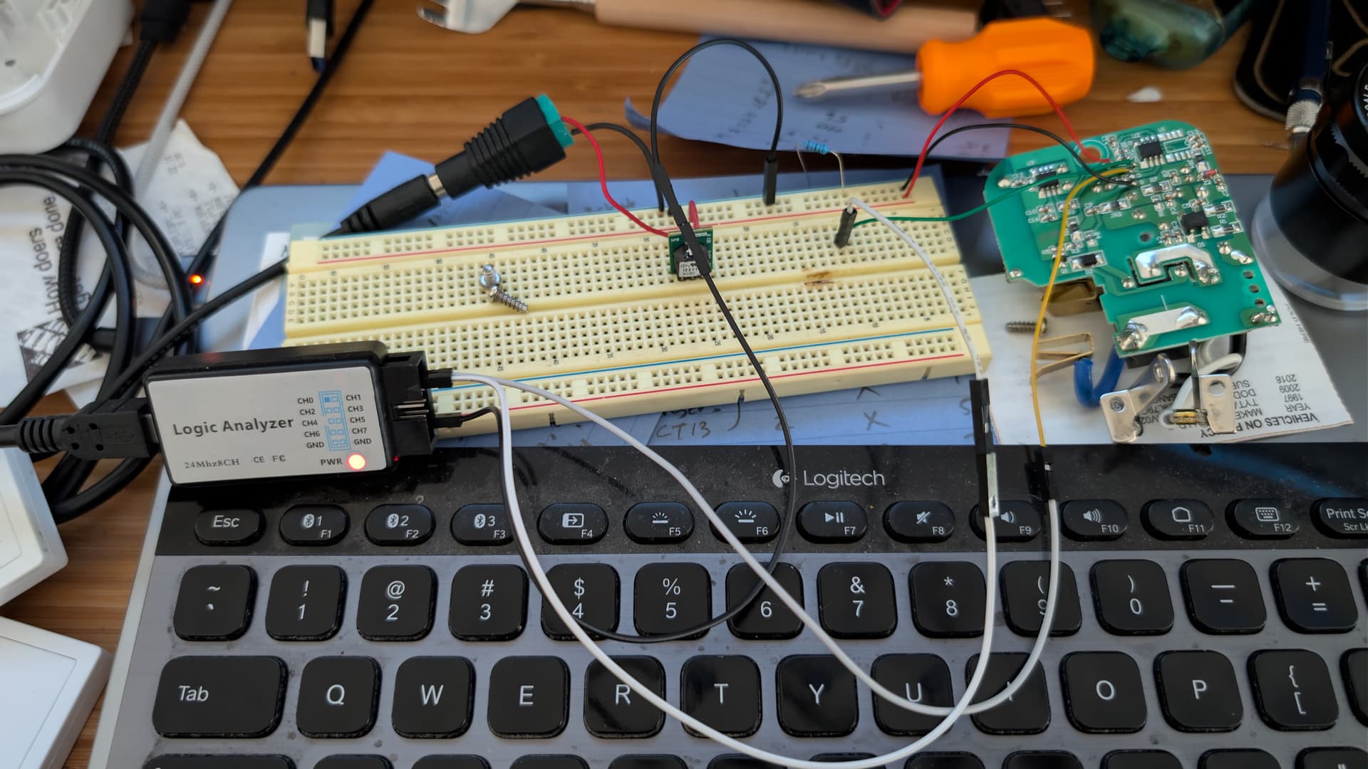 I had to order a logic analyzer so I can figure out what data is being sent by the 433MHz transmitter, which broke my “only what’s in the garage” idea. But I’ve wanted one for a long time and just never bought one, so…