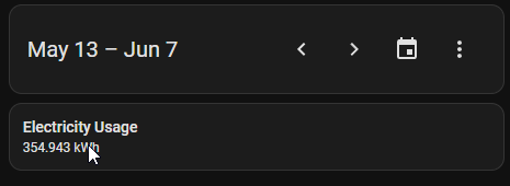 Thanks so much, Carl! This is exactly what I was looking for to be able to capture energy data outside of the energy dashboard, but able to use the energy date selection to define dynamic time frames. It works very well as is. Possible further enhancements might be to be able to control the output formats to allow placing the value & units to the right of the entity card name in addition to directly below for more layout flexibility. Thanks!