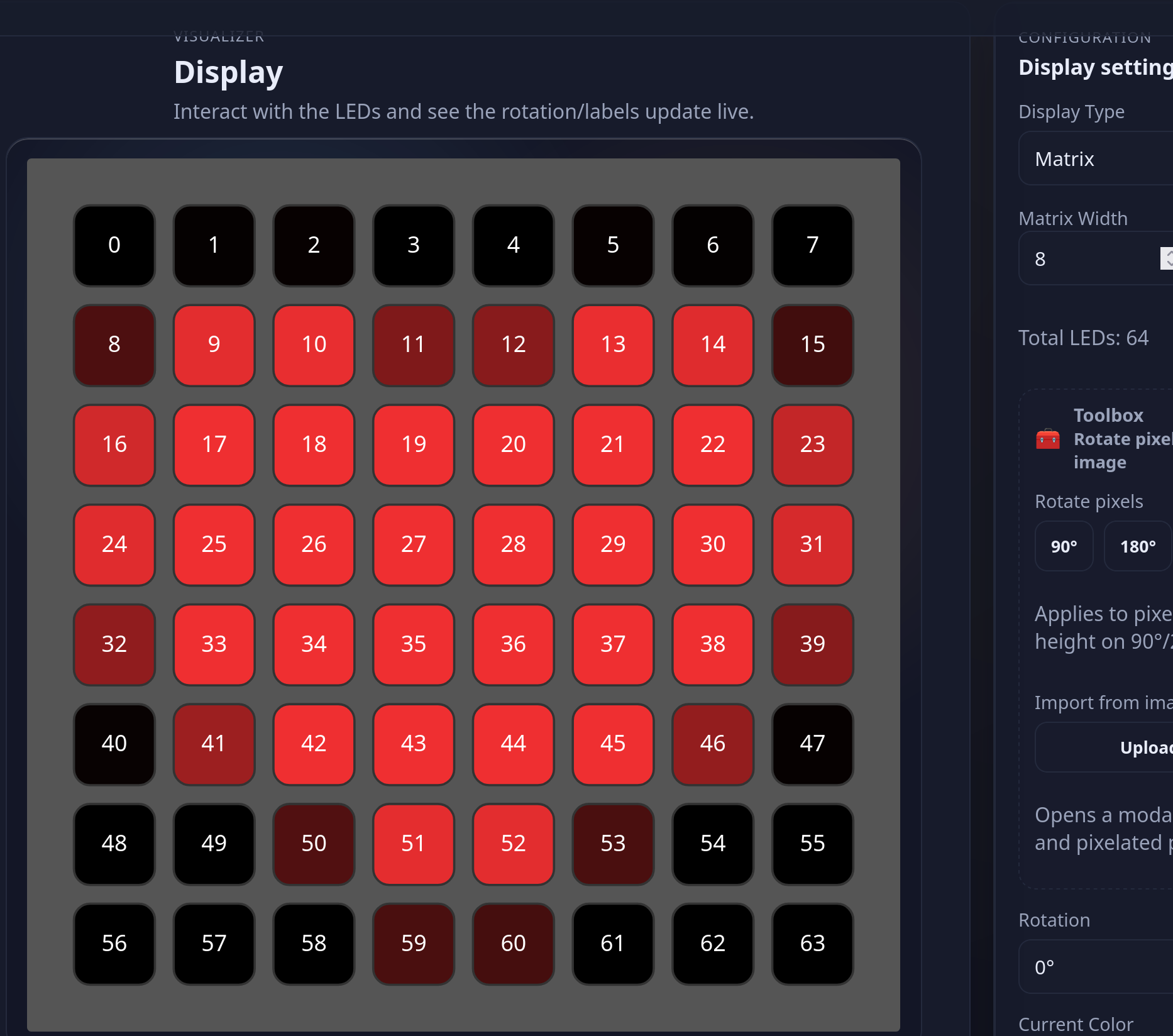 Toolbox in matrix display allows you to select any image, including SVG, and convert it to your matrix display, and rotate pixels to match your display.