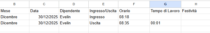 Tieni traccia delle presenze sul posto di lavoro, registrando l'ingresso e l'uscita su uno o più fogli di Google Sheet.