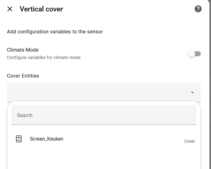 After installing the integration and choosing Vertical Blind as the shutter type, let’s move on to the configuration.