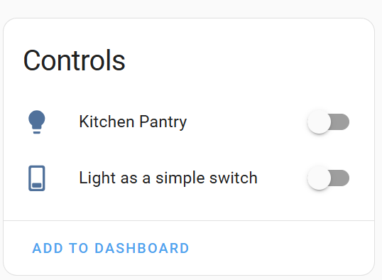 If you want, you can hide the light control by turning off its Visibility and can also change the “Show as” for the switch by clicking on the switch entity, then the gear icon, then changing the “Show as”