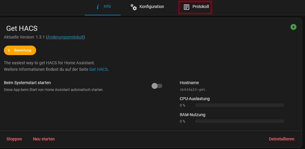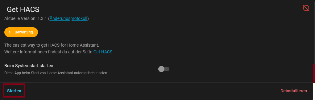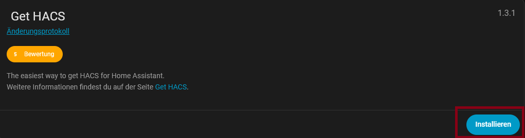 Back in the App Store, scroll down and you will find the entry âGet HACSâ. Click on it and go to âInstallâ (this is not HACS itself, but the installer).
