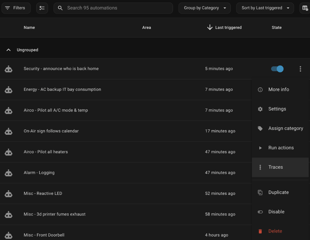 1.2) Automations & Scripts traces