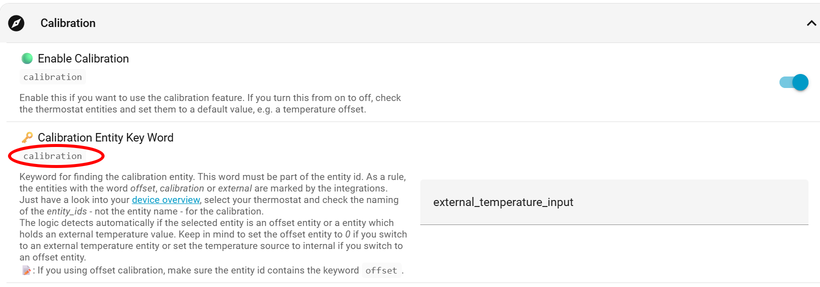 - using calibration by external temperature be sure the calibration entity contains the word “external” or “external_temperature_input” and not calibration.
