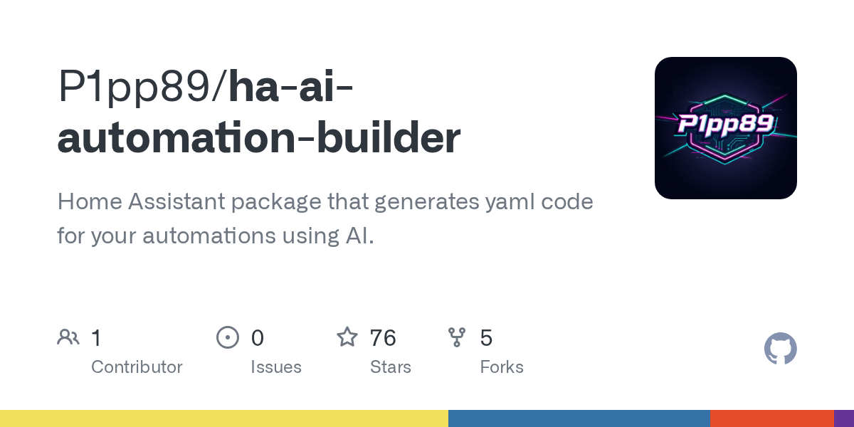 AI Automation Builder is a Home Assistant package that lets you generate automation YAML using natural language. Just describe what you want in plain English, and the AI generates valid YAML code you can copy/paste into your automations.