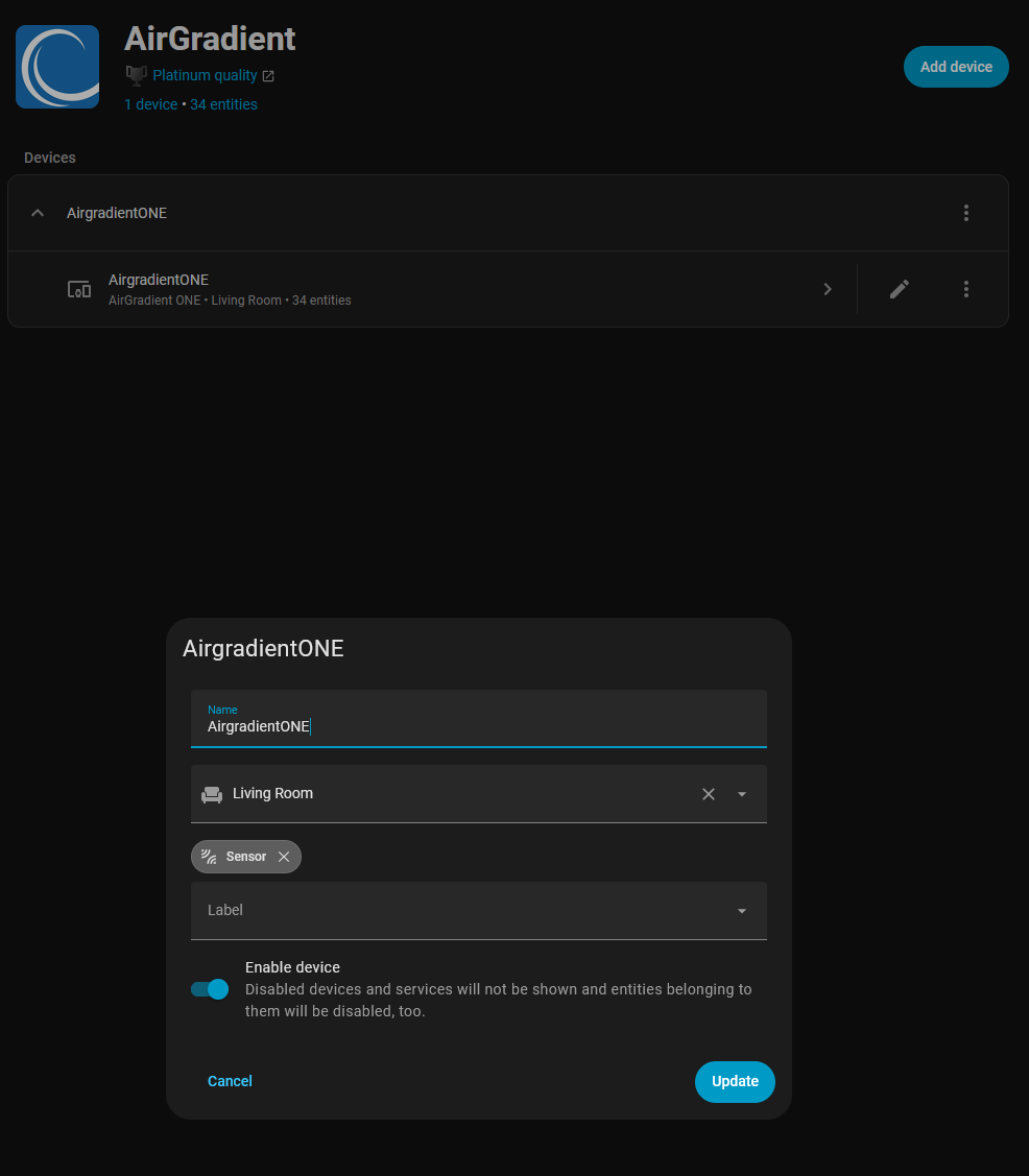I created a couple of dashboards for my two Airgradient i-9psl air quality monitors, but the two device names are showing up differently. I was pretty sure I screwed up the naming when I set them up, but when I look at the device settings they look identical.