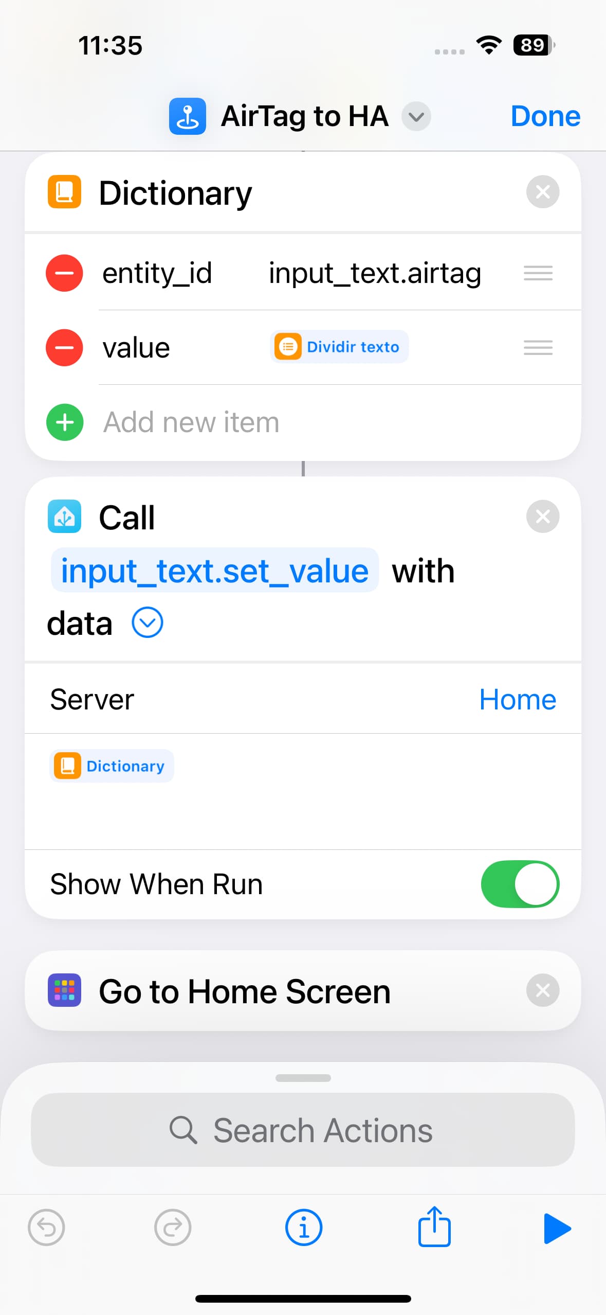 Yes, I am within the Shortcuts app, but am not sure what I should put next to “Server”? At the moment I have selected “Home” (see below), but am not sure if this is correct.
