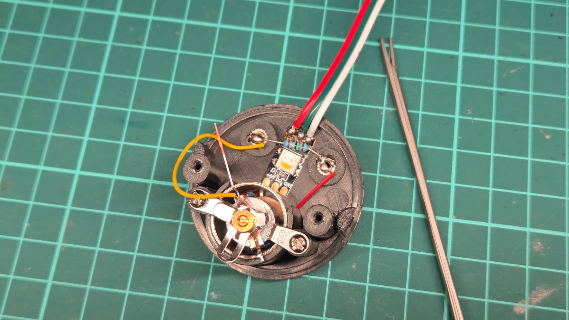 - Backlight - either just warm white or RGB, or rather just RG - when the “gradient” mode is enabled, the gauge gradually transitions from Red to Green with the position of the dial (or you can invert this to Green to Red e.g. for grid consumption)