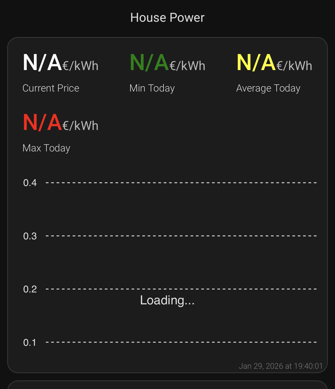 My chart works somewhat, thanks for all examples in this forum. I noticed that I’m not the only one having “Loding…” problem when opening the given HASS view.
