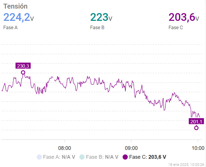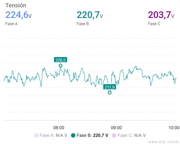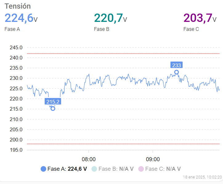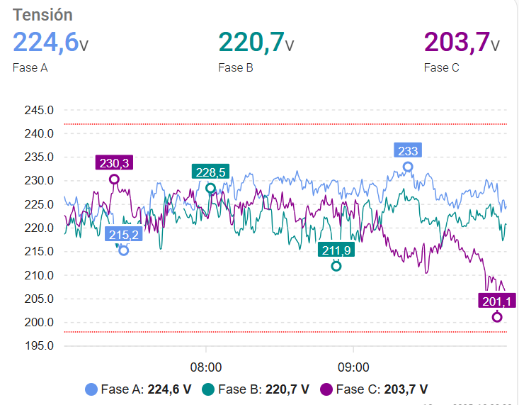 I have 3 series (electrical phases) that share the axes, scales and marked limits.