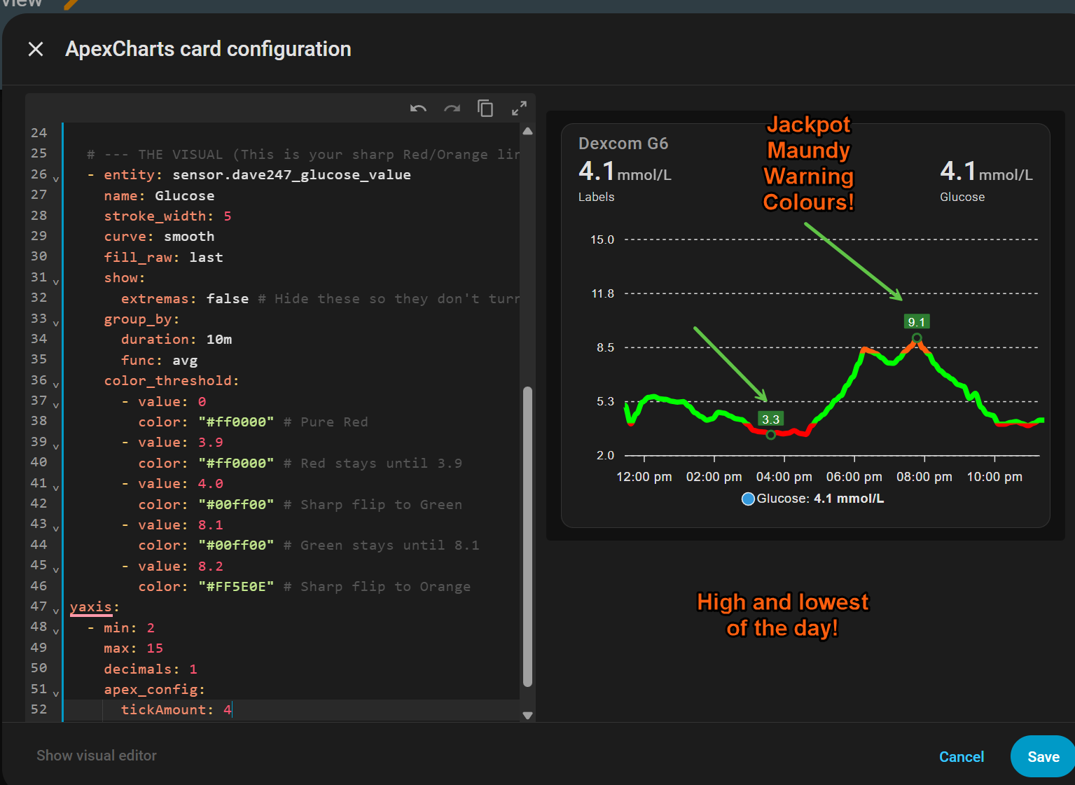 But not sure how a Dexcom G6 Theme can be overwritten to allow this in the code of the Apexcharts card.