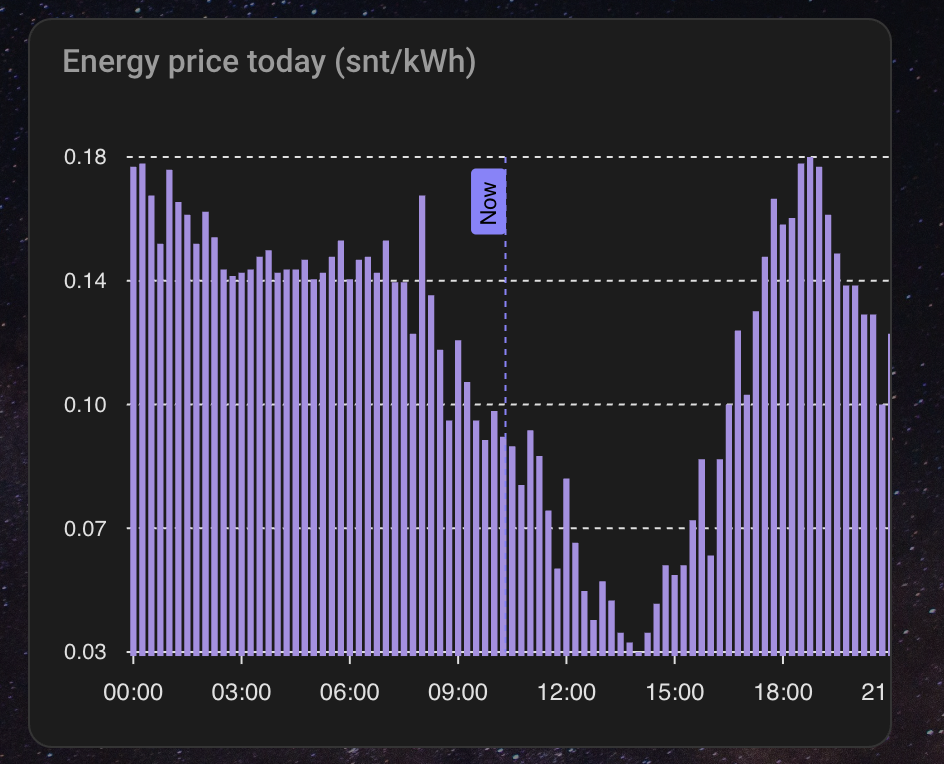 This might be slightly improved by using a 5-minute interval (see below). However, I’m not sure whether that would require more granular helper sensors, or if it would help even when only an hourly sensor is available.