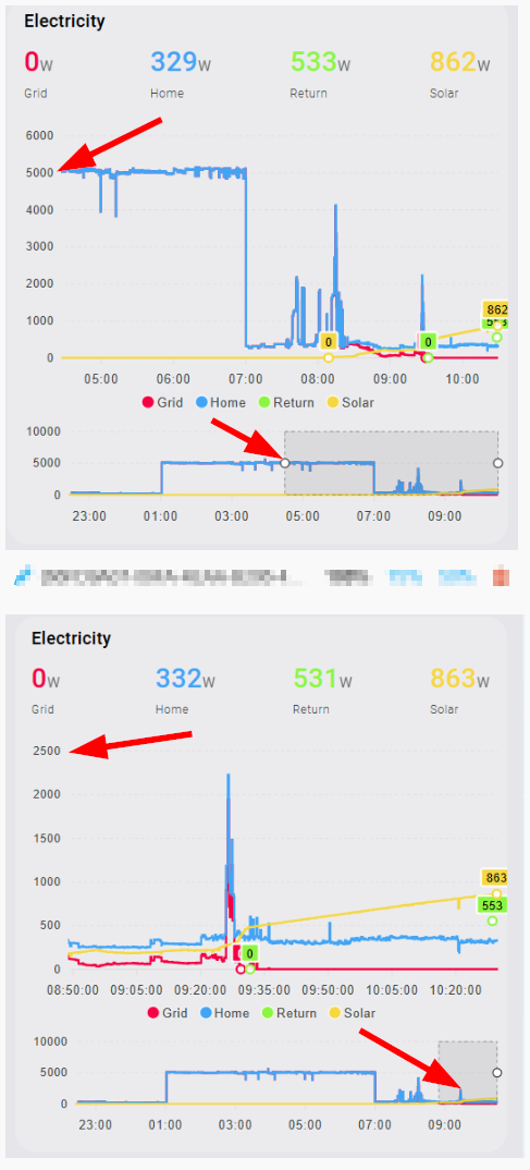 Has anyone been able to figure out how to scale the y axis based on the brush selection? I have a graph that spans across 3 days with a brush selection that defaults to 12 hours. The plot shows the total daily rain (reset to 0.0mm at midnight) and the current rain rate (in mm/hr). Currently the both y-axis (left and right side) are scaled to the largest value in the 3 day span. I want both y-axis to independently scale and update as I move the brush selection.