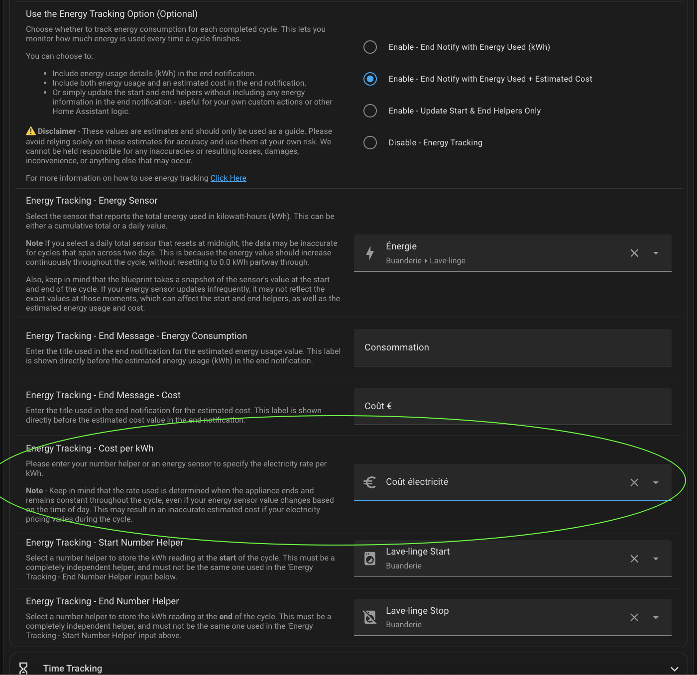 Cost per kWh: Youâve also entered sensor.lave_linge_energy, which is incorrect.
