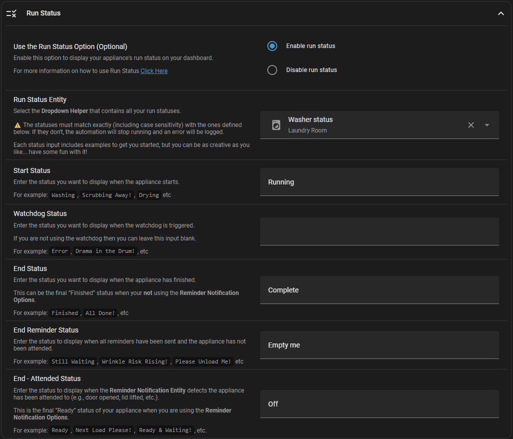 Iām trying to just change the dropdown status so that it shows up as a reminder on my dashboards and my TTS announcements made over my Echo speakers. It does this now based on the the āend run statusā for ārunning, complete, and offā but I canāt figure out how to change it to utilize the āend reminder statusā. I hope that makes sense.