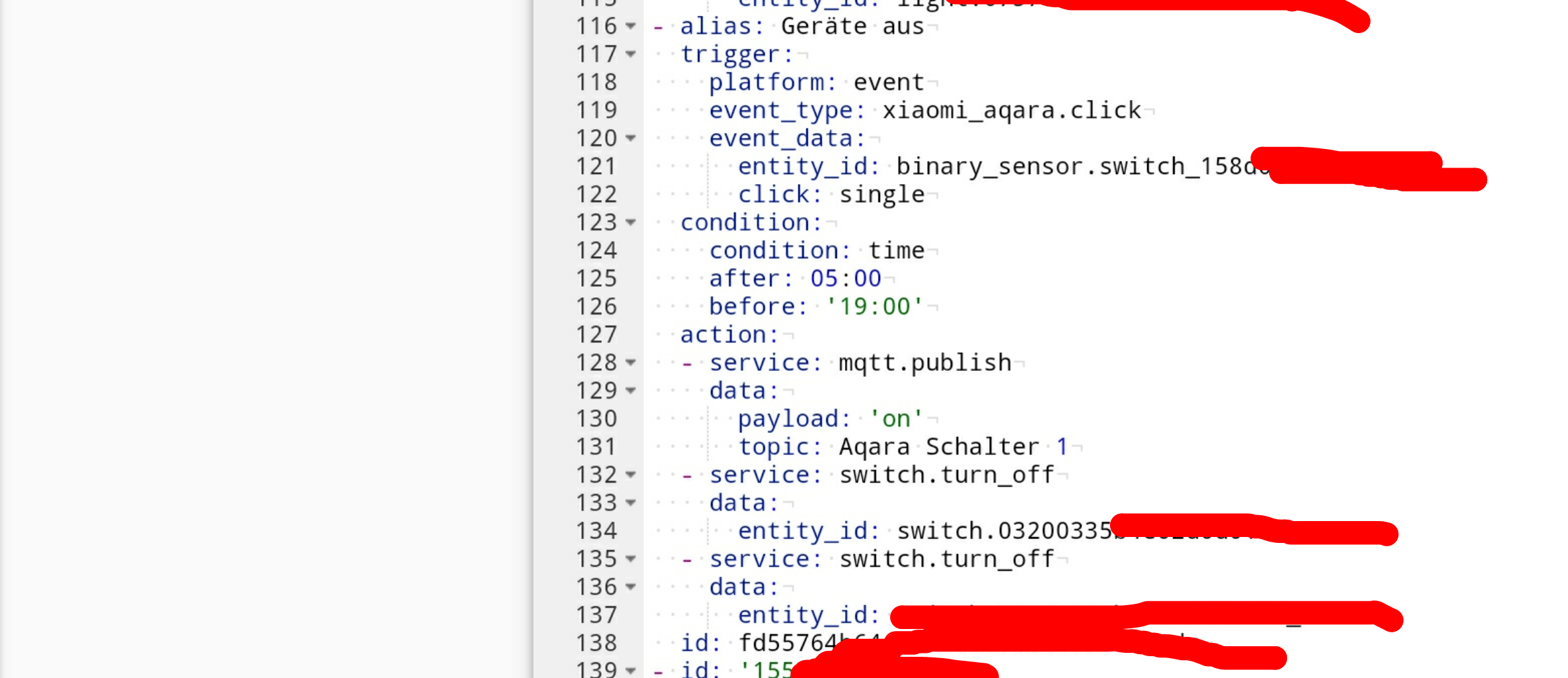 Hello, It’s me again, compared your automation with mine again. I think your formatting is not quite correct?!? Please move your 5 last lines by 2 signs to the left. Maybe this helps