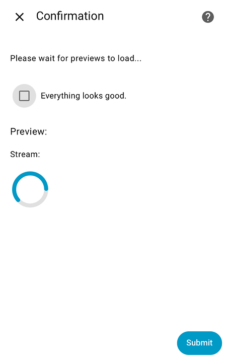 - When the following screen appears, check the checkbox and click submit (even though the stream doesn’t appear).