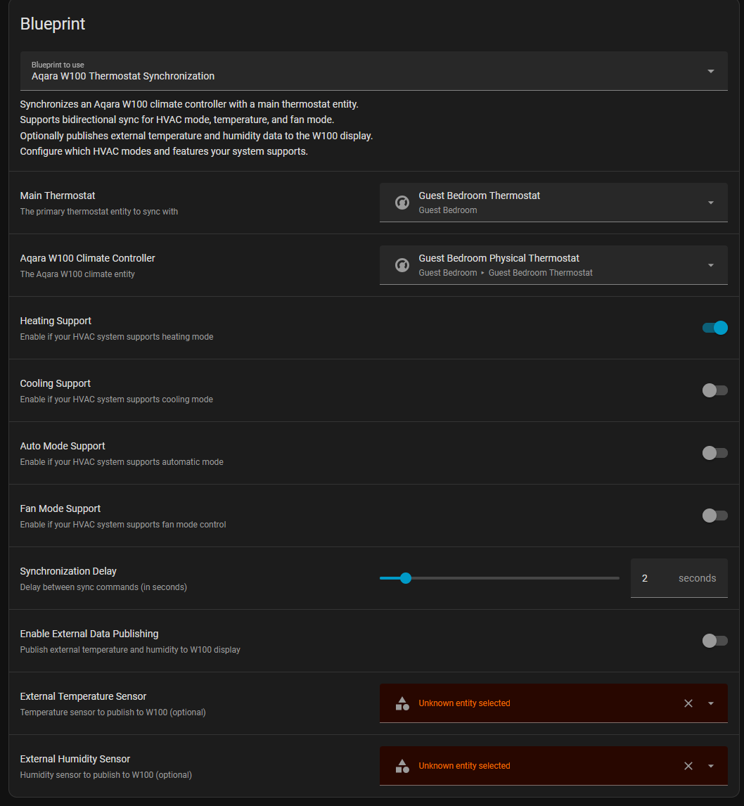 @boldie , no itās made to synchronise 2 climate entities, but you can easily edit the blueprint and customize your automation with your needs.