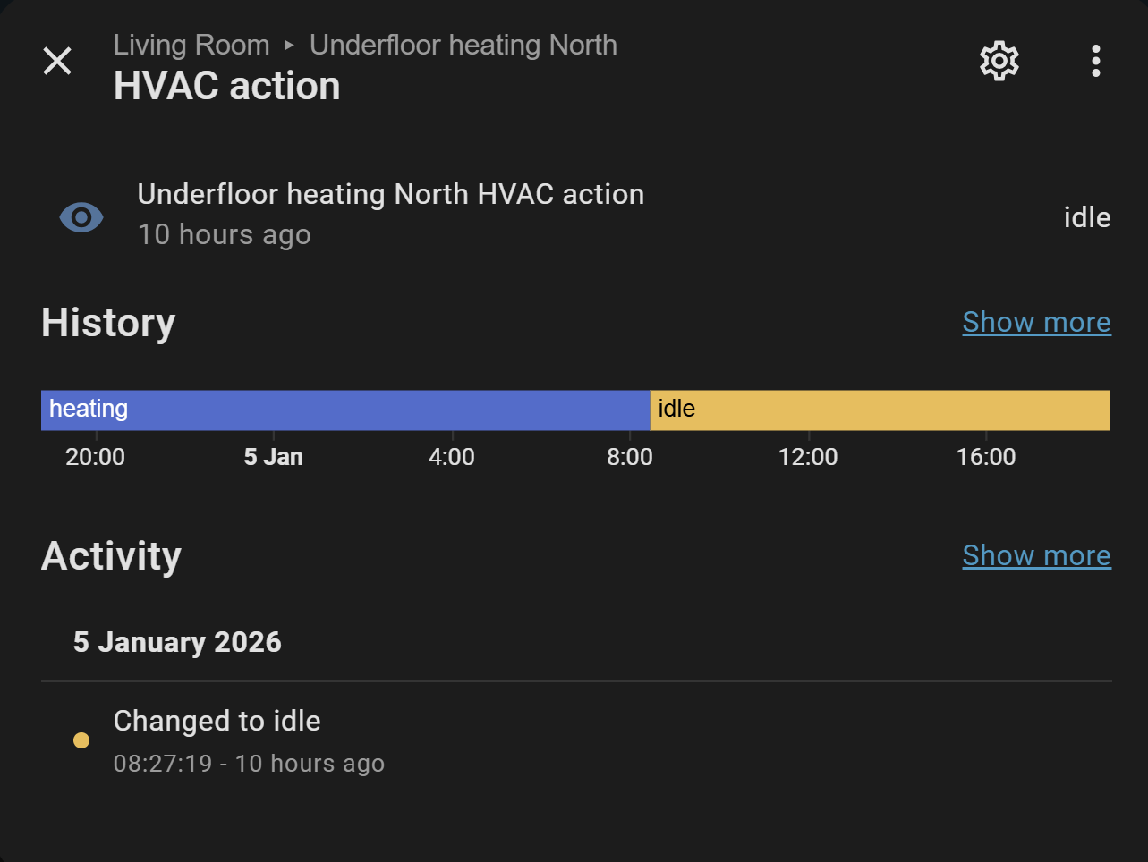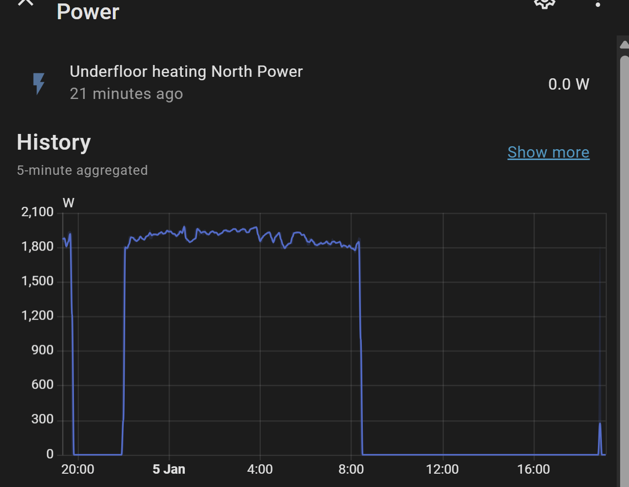 See the chart. “Kitchen underfloor” is Zigbee using ZHA, whilst “Aqara Floor heating” is in my bathroom, using W500 > Aqara M100 hub → HA via Matter.