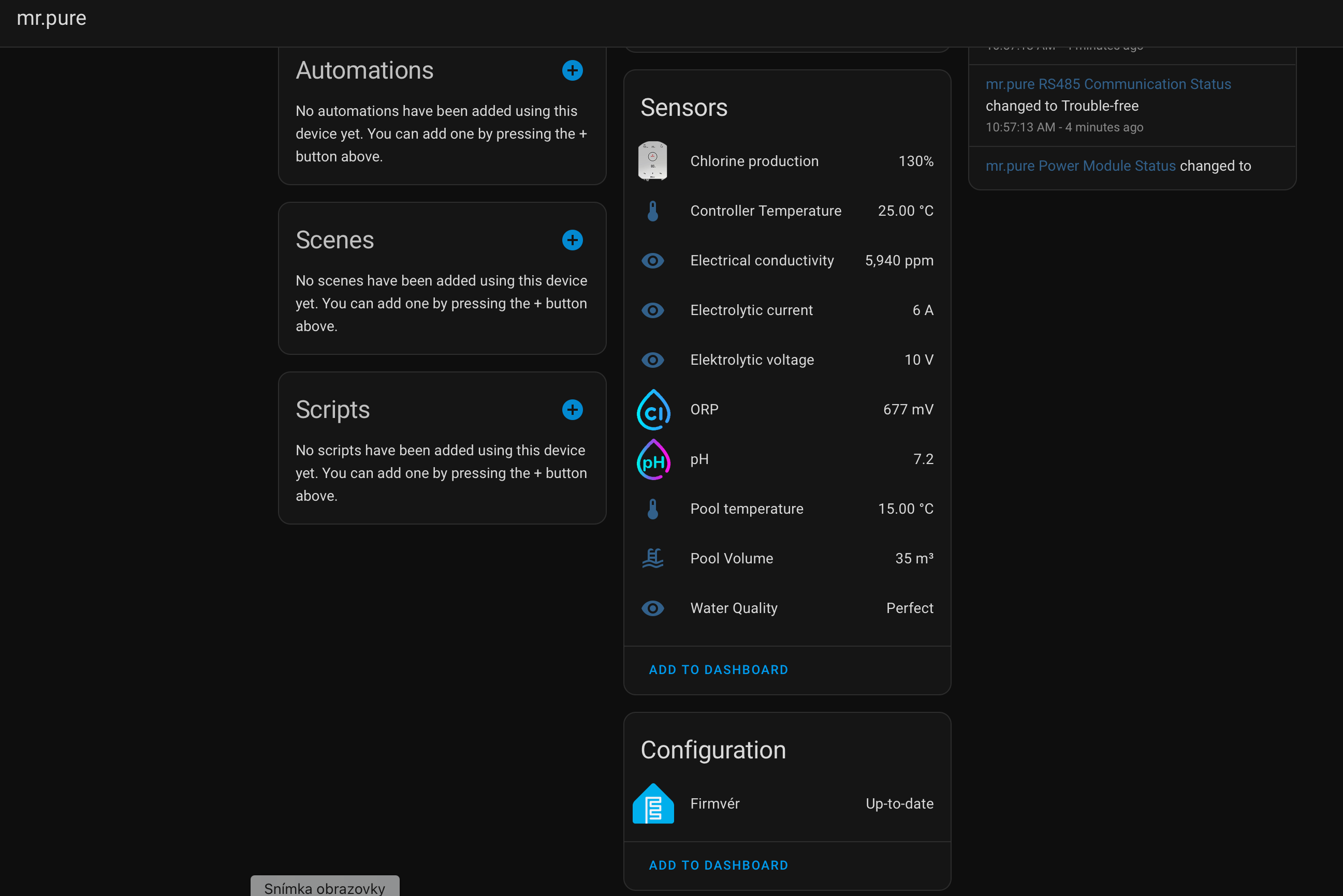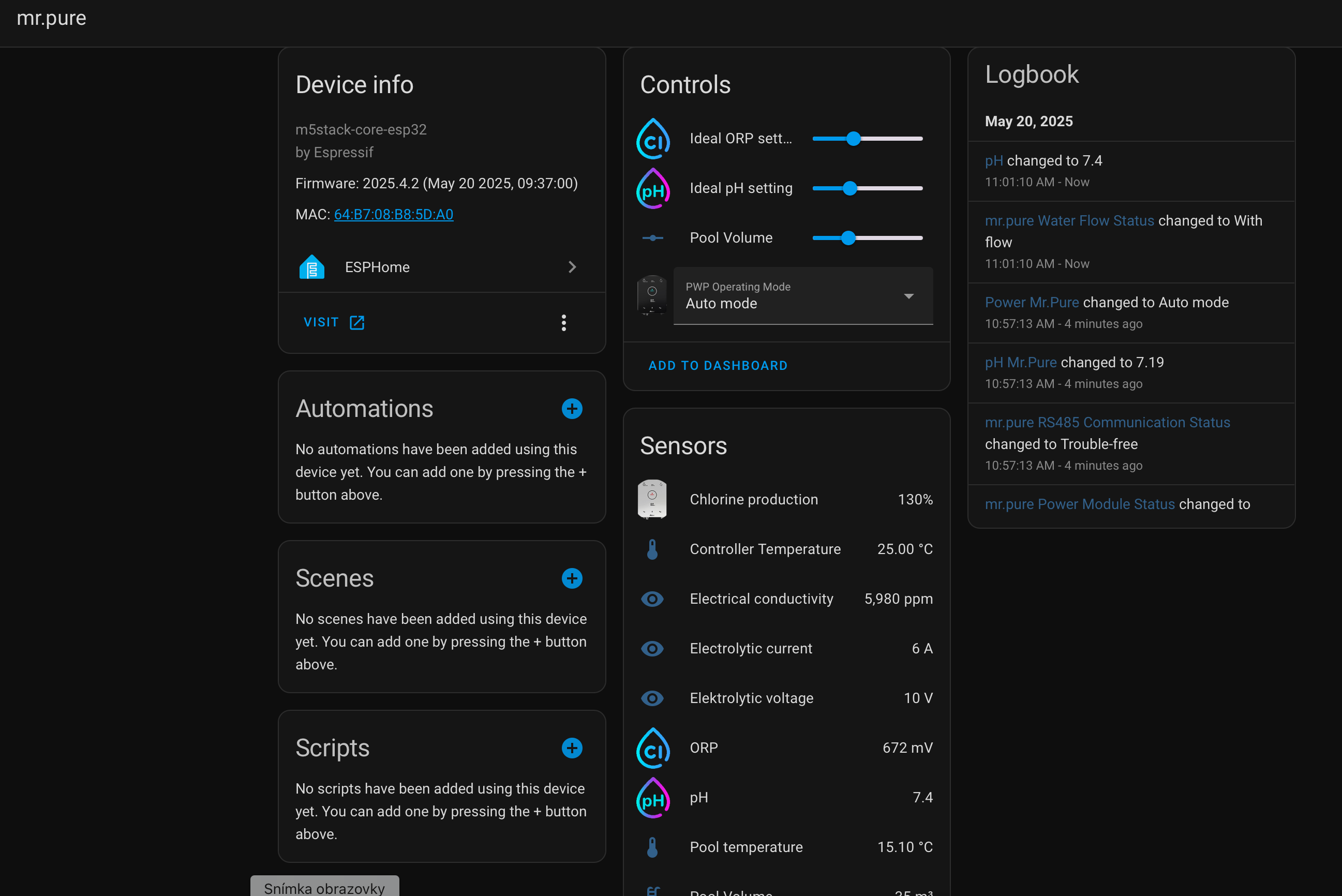I’ve just ordered the hardware to connect Mr Pure to Home Assistant, I’ll share my findings once I receive it and do it. I have the premium with orp device.