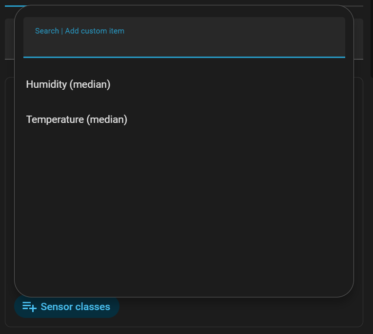 The sensor classes for that card are set to “temperature (median)” and “humidity (median)”.