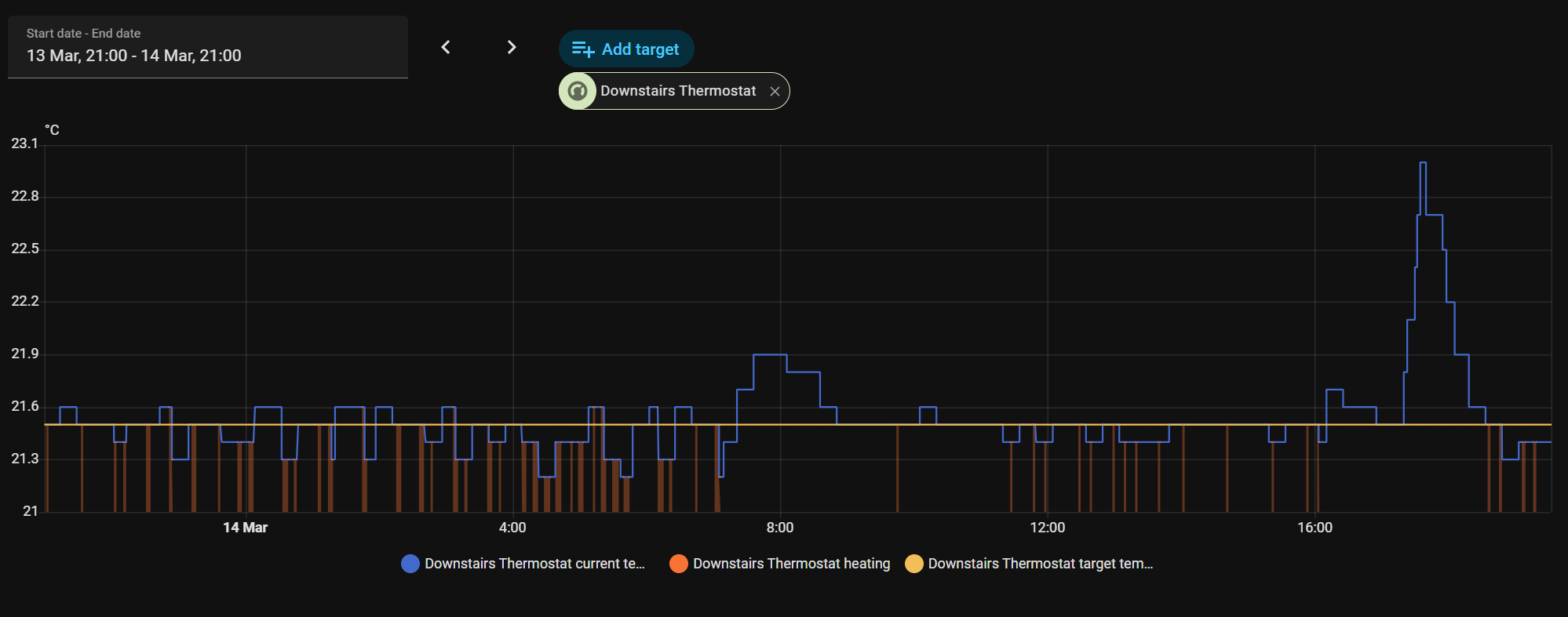 I have one thermostat in the living room, so I expect the median to be the same as the actual temperature read by that thermostat.