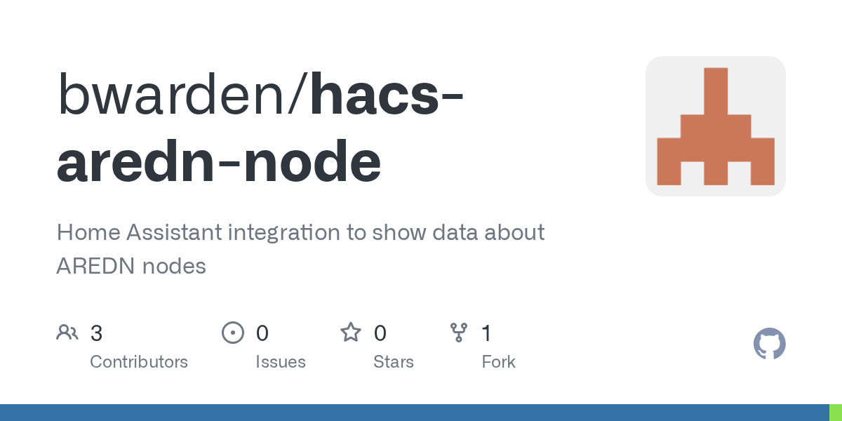 I’ve created a custom integration to track the status and health of AREDN nodes. It includes a binary sensor to indicate whether the desired node is currently reachable, and pulls in statistics and details for the other mesh nodes it’s connected to (via RF, DtD, Wireguard), CPU and memory usage, mesh RF status, a device tracker (if coordinates are set), and optional SNR details for RF-connected nodes.
