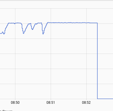 In this test, I used a phone charger and simply physically unplugged it. The power sensor was being updated every second all the time until 13:34:23, then there are no updates until 13:34:40. So I’m quite positive that I unplugged the device somewhere around 13:34:23.