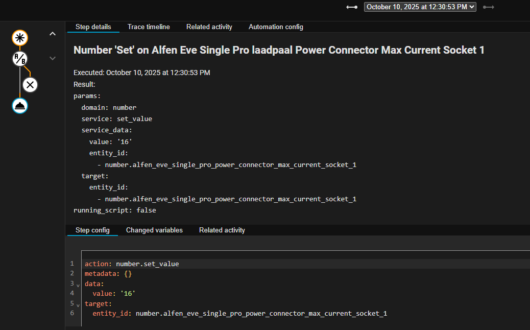 Also, I would like to know what the reason is why my automation sometimes gets triggered, but approx. 8 out of 10 times the value of the current of the EV charger does not get changed at all by the automation. Is this normal for HA, that actions are just sometimes working and sometimes not? I’m relatively new to HA.