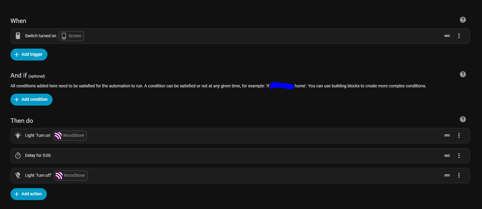 Nor Why You Choosed switch.turned_on as a Trigger , And why you added that âOptionsâ , What does that Option do actually ?