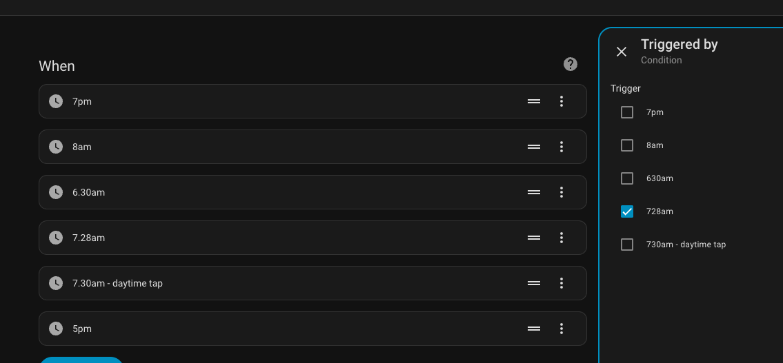 As you can see i have a list of triggers, but cant see the 5pm trigger in the options to trigger an item.