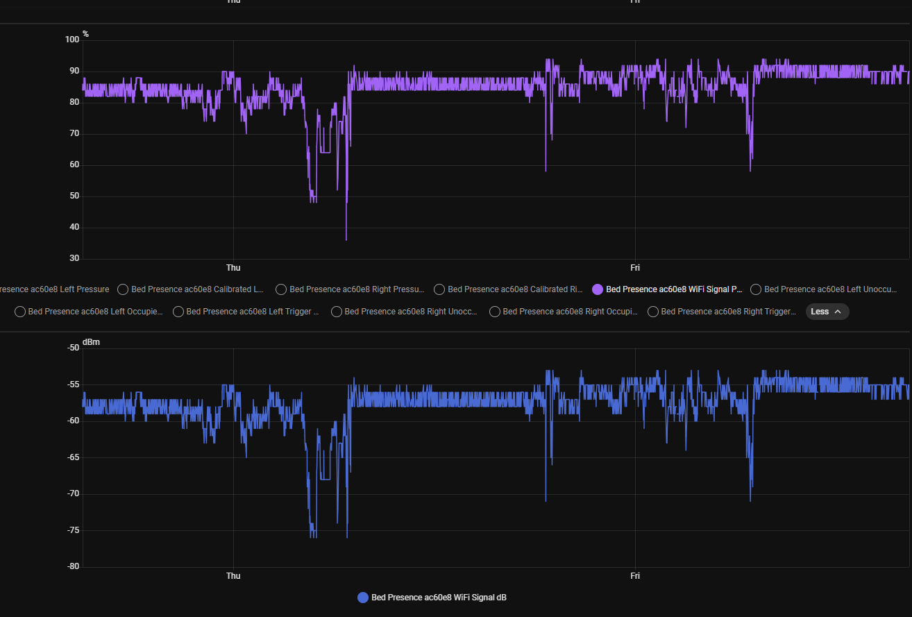 @stephenp93 It’s probably a result of the corner of the house, mattress, walls, etc. but my sensor is having a tendency to have blips of “unavailable” (see below). I haven’t analyzed the length of time but many of them look to be within 10 seconds. Is there a timeout or a retry that you are aware of that could reduce this bouncing?