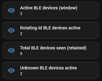 I’m now up to 12 devices in the diagnostics file (the Bluetooth - Advertisements tab shows more than 40 without my 10 proxies) but still none of them seems to be my Pixel phones that I use for in-home location via BLE (and which would probably show "mac_behavior": "rotating") or either of my SwitchBot temperature sensors (which should probably show a fixed MAC address).