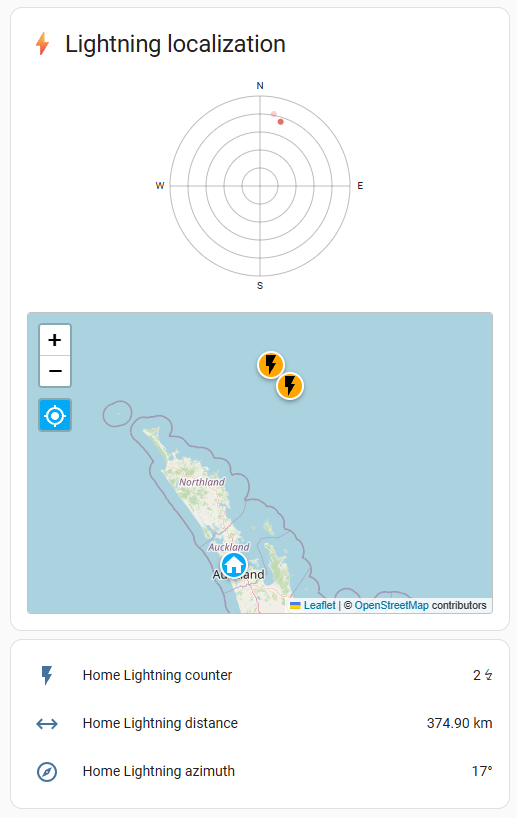 An optional interactive map view displaying recent strikes relative to your zone.home (requires geo_location.lightning_strike_* entities)