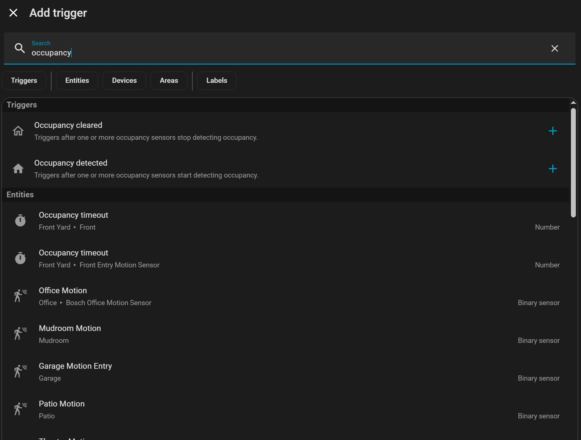 No, you are using Occupancy triggers, they are new. Added in december/january. You’re asking about Motion Triggers, they are not in the software yet. Both of these triggers are the “new style triggers” and are only accessible via labs. This is a work in progress and the work isn’t done. Obviously it’s not as simple as you’re making it out to be otherwise the motion triggers would already exist.