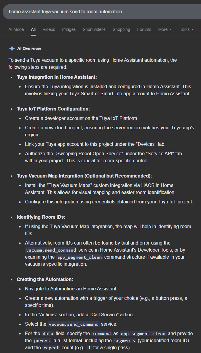 however I there are ways to have home assistant send robot to specific room. just involves setting up Tuya developer account and some extra steps to find the room ID, then yaml the ID in the automation.