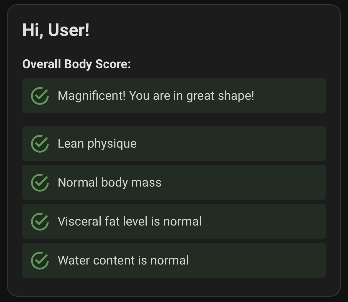 Hi everyone! I’ve created a simple Markdown-based dashboard for smart scales (like the Xiaomi Mi Scale) that uses the tag for a cleaner look. This dashboard turns weight loss or weight gain into a game where you have to collect all the “checkmarks.” It supports gender-specific variations and is available in English and Russian. I’ll be glad if it helps someone take care of their health.