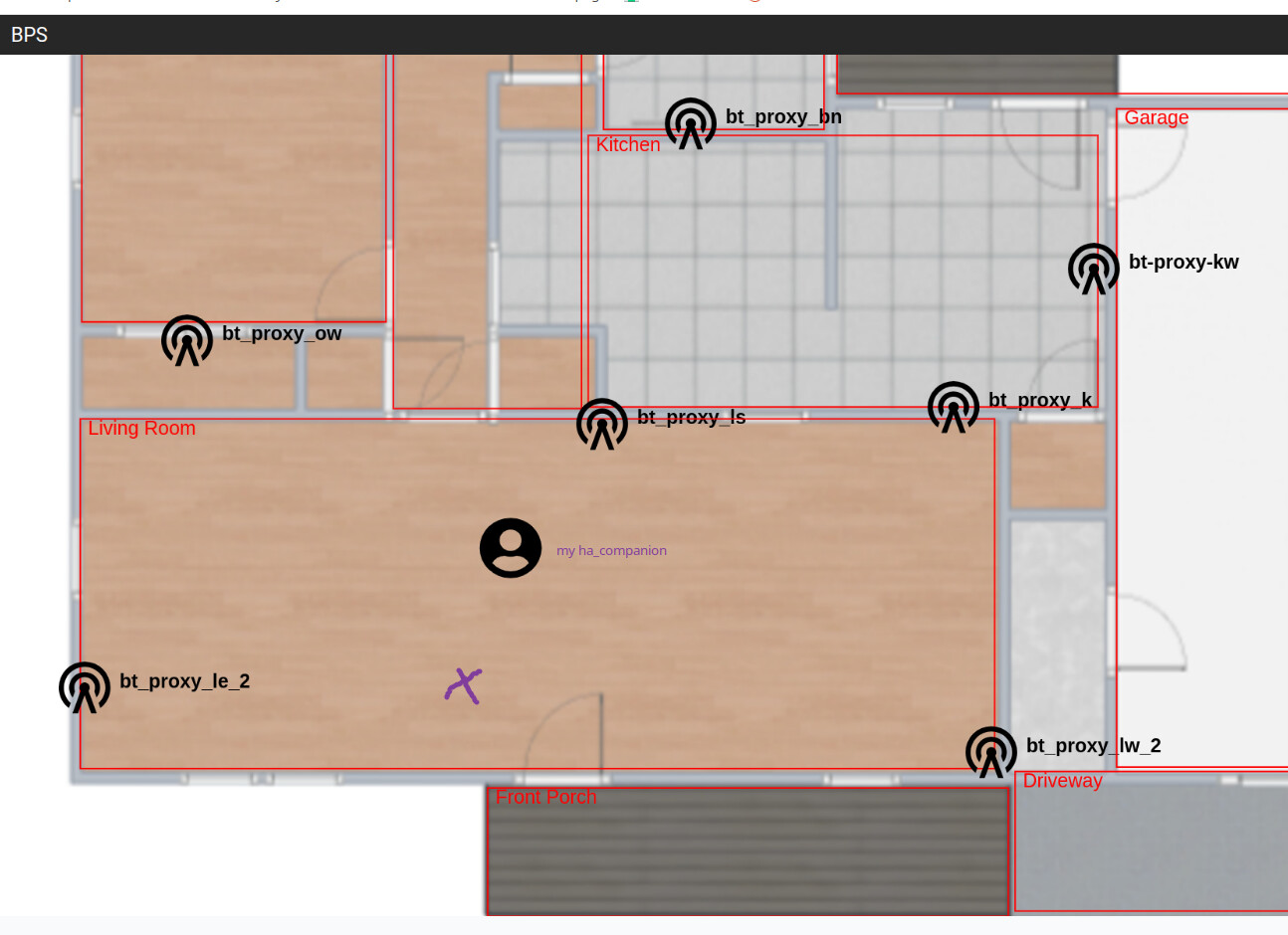 It almost seems like the orientation is off… Bermuda is showing fairly accurate measurements to 3 sensors [LW needs some tweaking] in the Living Room (lower portion of floorplan) yet BPS is showing me in the Sanctum (upper portion of the floorplan).