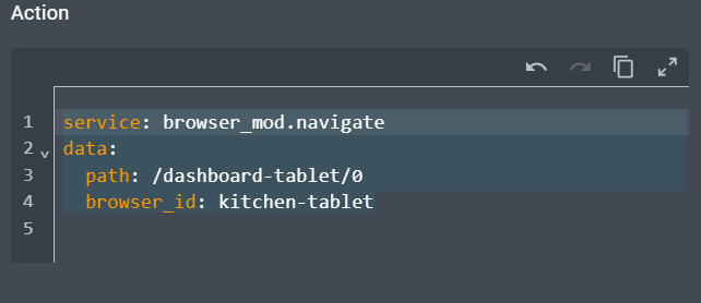 I’m trying to configure a global “home” button for use on my fullscreen dashboard. The icon shows up where it should, but I don’t get any action when I tap on it. What am I missing? This is my current YAML for the overlay in the browser mod visual editor, I have verified the path is correct. Thank you!
