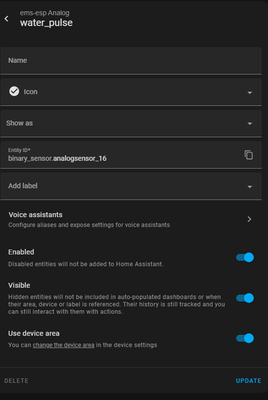 I’ve just installed a water meter in my home pipework with a reed sensor and want to get the data into HA. I’m struggling a bit because, unlike all the posts I’ve seen here, I’m not using ESPhome as an intermediary. I’ve connected my meter’s pulse output to an EMS-ESP32 device which is monitoring my home heating system. This is then passing the pulse data to HA via MQTT…