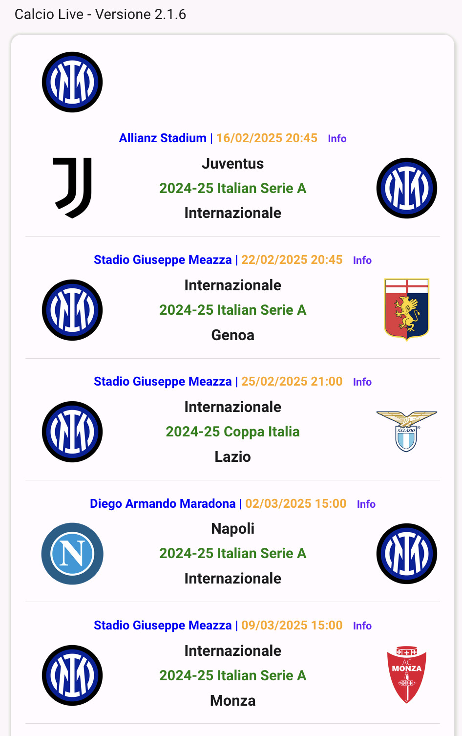 The ‘Calcio Live’ project consists of an integration (which creates the sensors) and a part with 5 Cards.