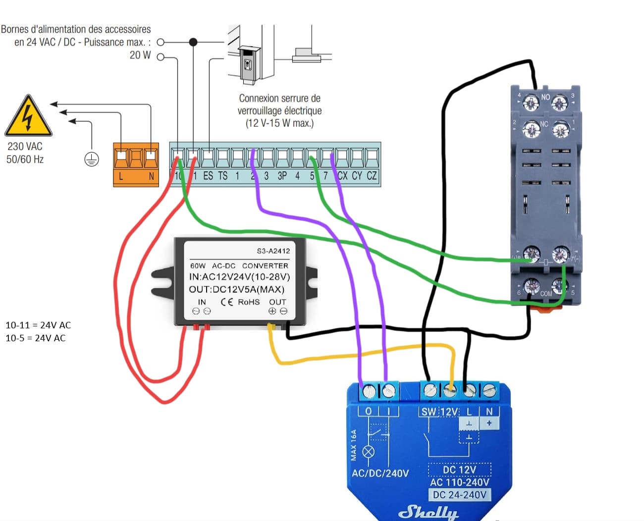 This is my final set-up with the ZM3E. I’m using a 24v AC relay to know whether the gate is open/opening or not.