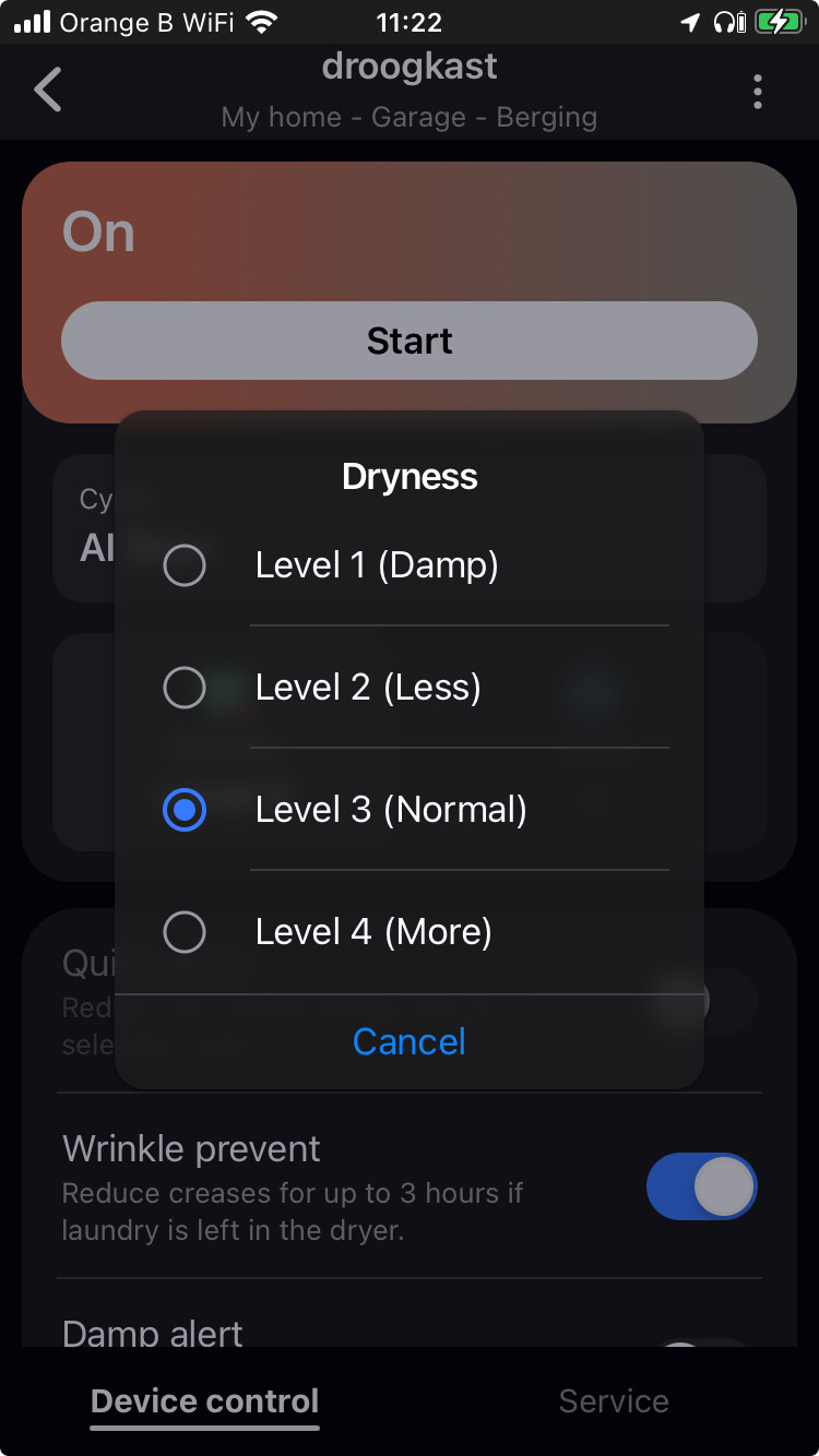 3/ besides that I cannot control the cycle and dryness level - I can also not see the currently chosen cycle and dryness level. So I would like to see that state information as well.