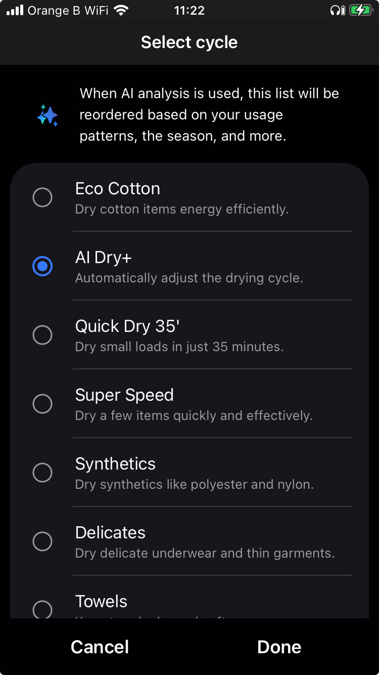 Still kinda useless. You have to be there to turn on smart control every time, so just press the cycle settings instead.