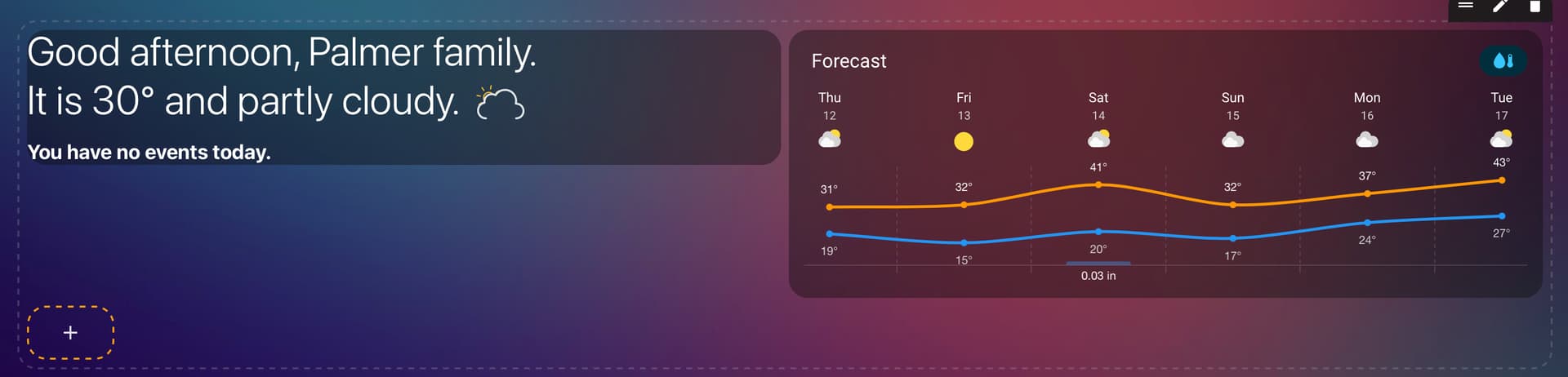 Good {{states('sensor.time_of_day_description')}}, Palmer family.
