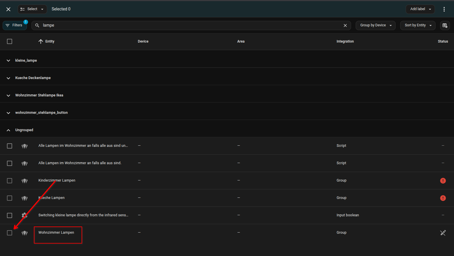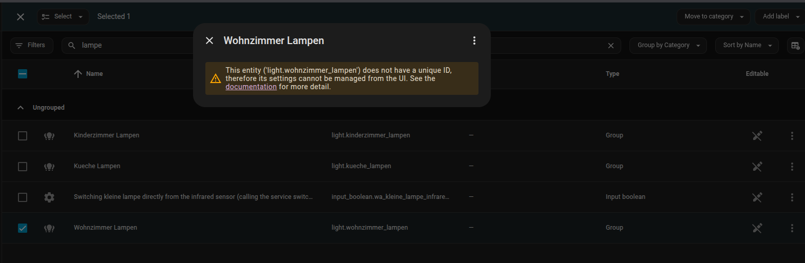 I have an older entity, called light.wohnzimmer_lampen that I can neither change nor delete.